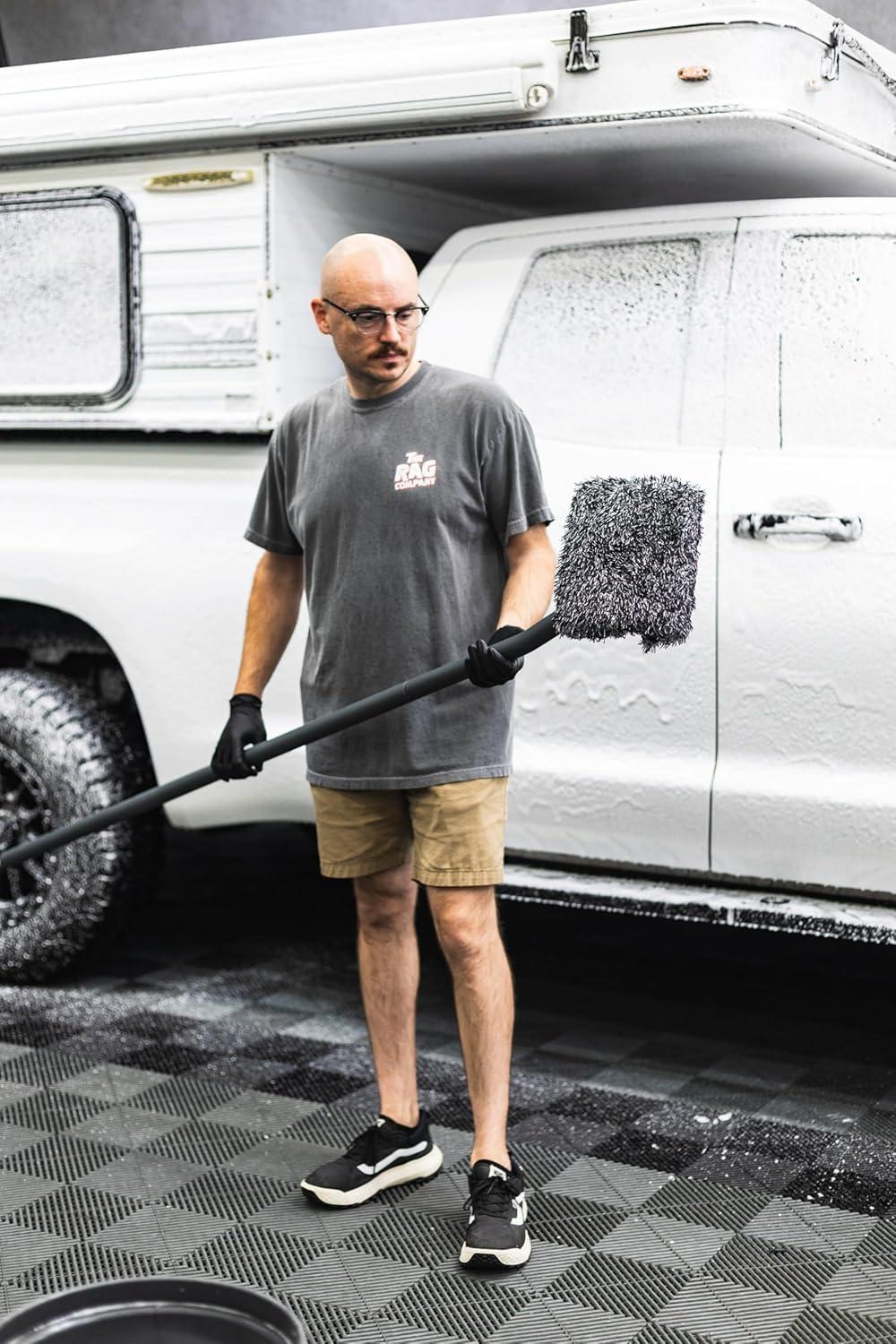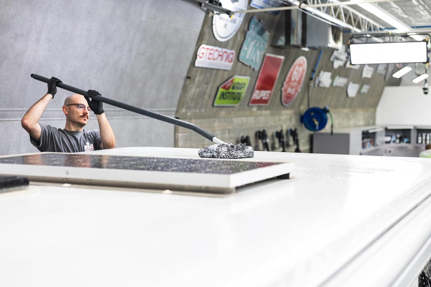 The Rag Company – Mitt on A Stick Pro+ | Clean Hard-to-Reach Roofs and Sides of Cars, Trucks, RVs, Semis & Trailers – Soft Microfiber Head and Extendable Foam Handle