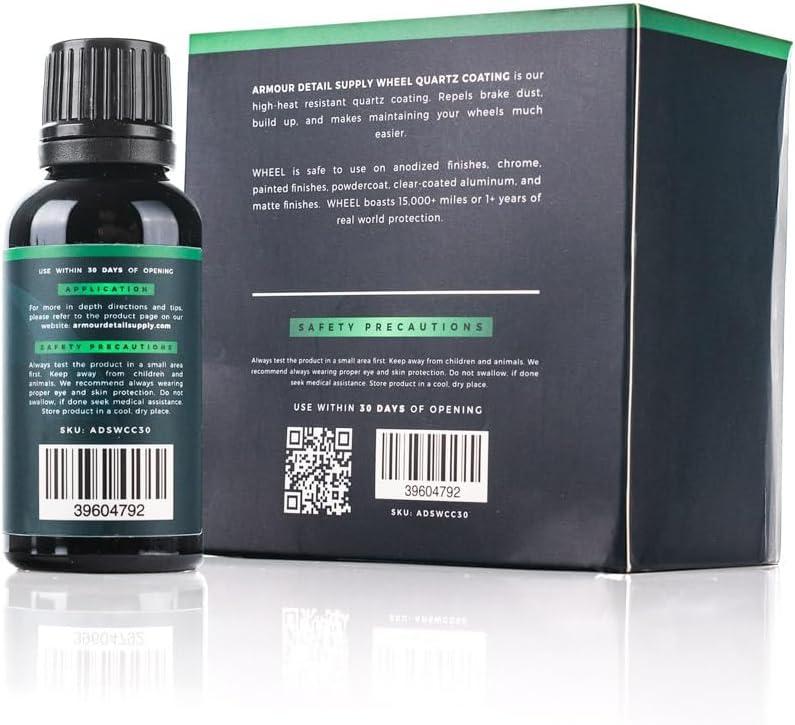 • Armour Detail Supply – Wheel Coating – High-Temperature-Resistant Quartz Coating for All Wheel Types & Finishes – Easy Application; 1-Year Protection – 30 ml